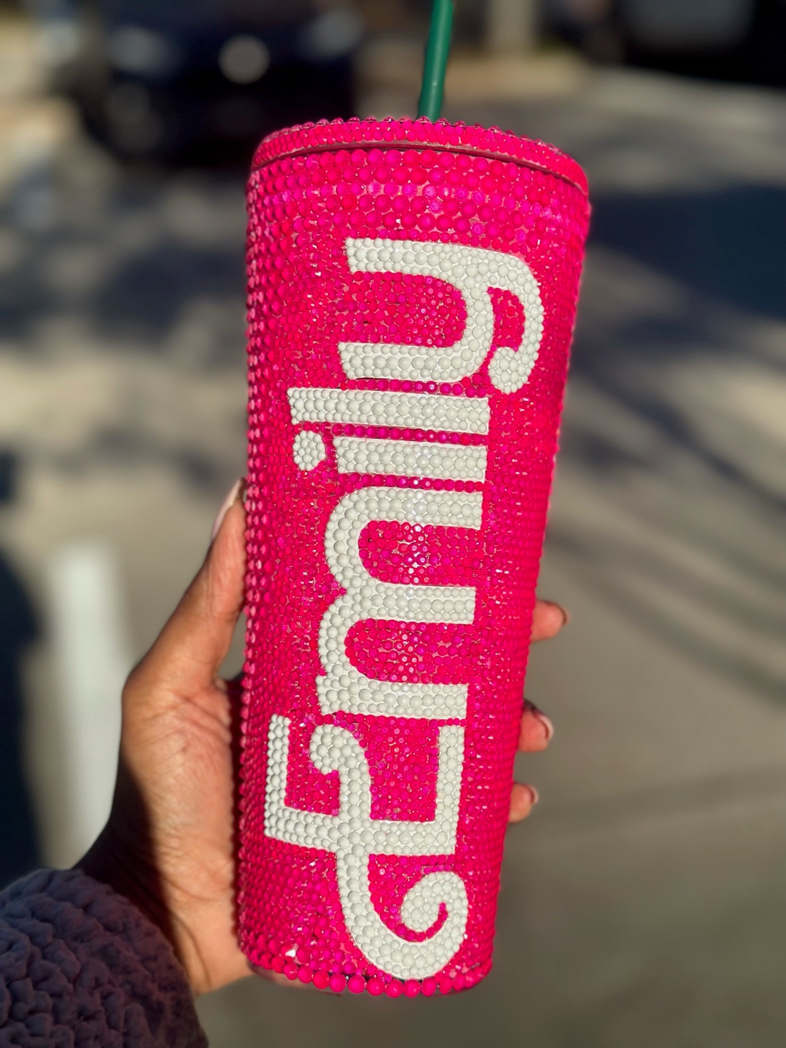 We have many glitters, rhinestones, designs and fonts available. If you don't see something you like please message me. I would love to help you with your custom order!