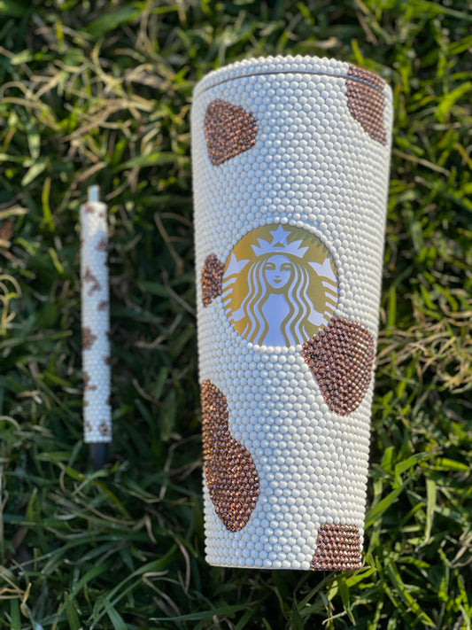 Cow Print Starbucks Acrylic Rhinestone Tumbler - With Name